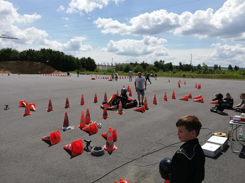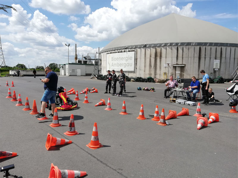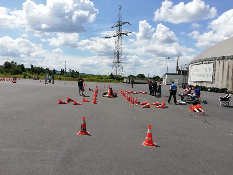Es wurde ein Übungsparcours mit den Pylonen aufgebaut.